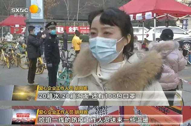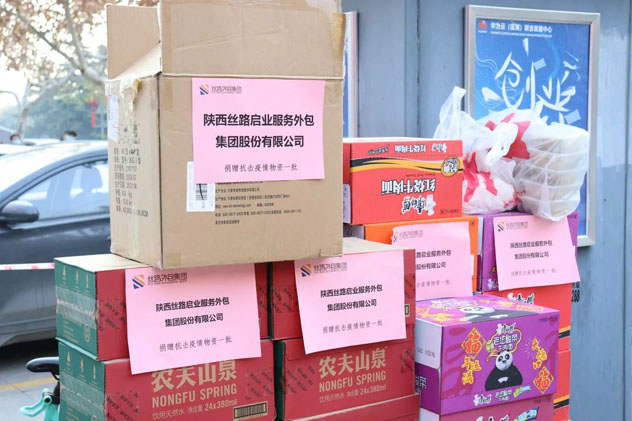 疫情无情人有情!面对势头严峻的西安疫情,牵动着社会各界的心。 为疫情防控阻击战贡献力量,2021年12月22日上午10点,中共陕西丝路启业服务外包集团股份有限公司党支部书记胡月妮、工会主席赵蕊代表公司向疫情防控一线人员捐赠慰问物资。 丝路外包集团党员代表何东、张发起同志搬运防疫物资 丝路外包集团党支部书记胡月妮、工会主席赵蕊、党员代表张发起 丝路外包集团积极行动,以实际行动关心慰问守护人民健康和生命安全的一线工作者,送去温暖和爱心。 运送搬运防疫物资 丝路外包集团向莲湖区环西街办大庆路核酸检测点捐赠20箱水,20箱泡面、口罩100包。 丝路外包集团党支部书记胡月妮被陕西省电视台记者采访 捐赠慰问期间,党支部书记胡月妮同志被陕西省电视台记者采访。 胡月妮同志提到,疫情防控仍旧是最重要的工作,疫情就是命令,防控就是责任;当前西安疫情形势严峻,丝路外包集团通过此次捐赠慰问活动,向在抗疫一线人员辛苦付出致敬;也希望能够通过这次捐赠慰问活动,积极贡献自己的一份力量,传播全社会共同战胜疫情的信心和决心;我们相信一定能够早日战胜这次疫情。 丝路外包集团一直以实际行动践行企业的奉献和担当精神,在抗击疫情的关键时期,希望我们守望相助,合力抗疫,打赢疫情防控攻坚战。 在今后,丝路外包集团在全力做好自身企业经营的同时,也将会积极履行企业社会责任,以实际行动致敬支持抗疫一线工作人员,为打赢这场疫情防控阻击战贡献力量! 编辑/摄影:刘云 赵雅迪 审核:高晓兵