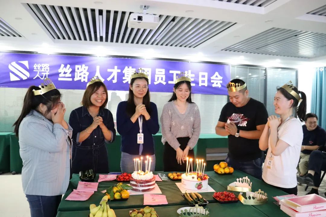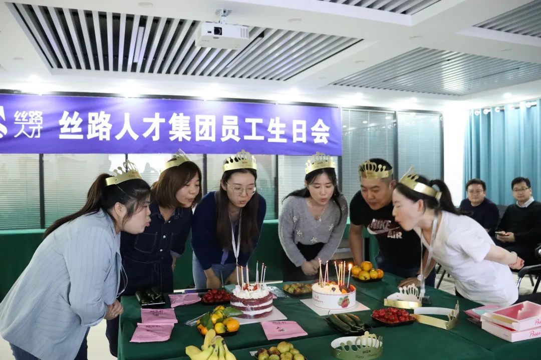 9月21日,丝路人才集团举办了2022年第三季度员工生日会。在这个特殊的日子里,集团工会精心为寿星们准备了这场生日会,公司提前为寿星们准备了香甜可口的蛋糕和生日礼物。让各位寿星在这特殊的一天里收获了满满的祝福。 招聘事业部寿星代表孟莎莎在发言中表达了对公司的感谢并献上了对其他寿星真诚的生日祝福。 寿星们一起点蜡烛 许愿 伴随着大家祝福和歌声,寿星们吹灭了蜡烛。在这个特别的日子里,丝路人才集团祝寿星们生日快乐,岁岁相伴,平安健康,愿所有的幸福和快乐围绕在你们身边。 党支部书记熊瑾(左一)代表集团为生日员工送上生日礼物 寿星们为大家分蛋糕 每一次的员工生日会是公司工会对每一个员工的人文关怀,是团队团结友爱的桥梁。丝路人才集团重视、关注每一位员工的成长和人性化的管理和关怀,本次活动更是进一步提升了公司员工的内部凝聚力。 一岁一礼,同唱一首生日歌,生日会活动在欢乐的氛围中落下帷幕。感谢时光留下对的人,感恩所有的遇见和陪伴。 愿丝路人才集团的家人们带着幸福感,开心工作,幸福生活!
