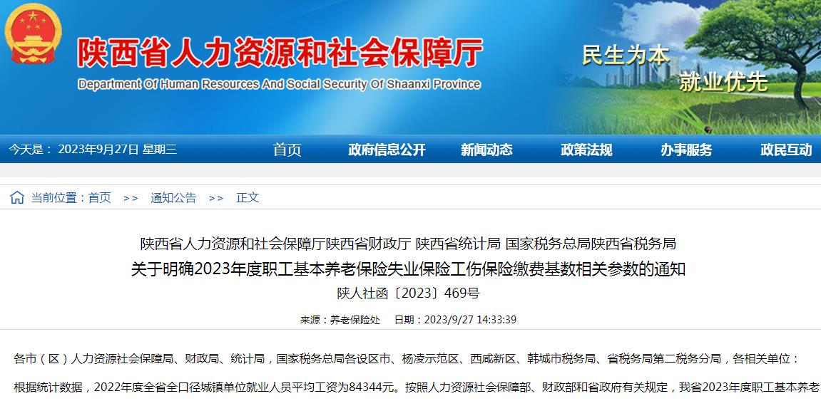 最新消息,陕西省人社厅发布《关于明确2023年度职工基本养老保险失业保险工伤保险缴费基数相关参数的通知》,其中明确陕西2023年度职工基本养老保险、失业保险、工伤保险核定个人缴费基数上限标准为253032元,下限标准为 50606元。