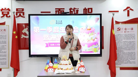 丝路人才集团副总经理惠秀娟以诚挚而温暖的开场致辞,拉开了活动的序幕。她对全体职工的辛勤付出表达了深深的敬意与感激,还为大家送上了三重祝福,如同春风化雨,让大家感受到了丝路人才集团大家庭的温暖与关怀。