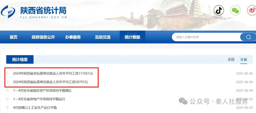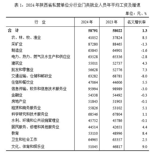 陕西省私营单位|2024年年平均工资58791元