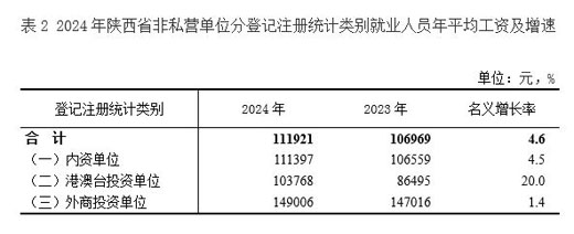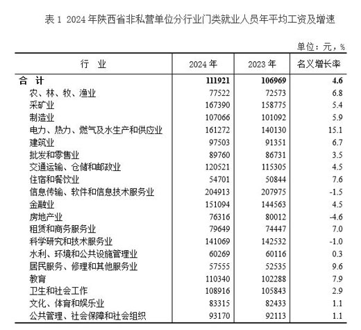 陕西省非私营单位|2024年年平均工资111921元